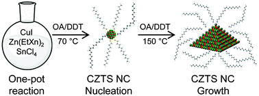 A non-injection, one-pot synthesis of kesterite Cu2ZnSnS4 (CZTS) nanocrystals that allows for multi-gram yields is achieved through the selective use of a binary sulfur precursor and ligand reaction mixture.